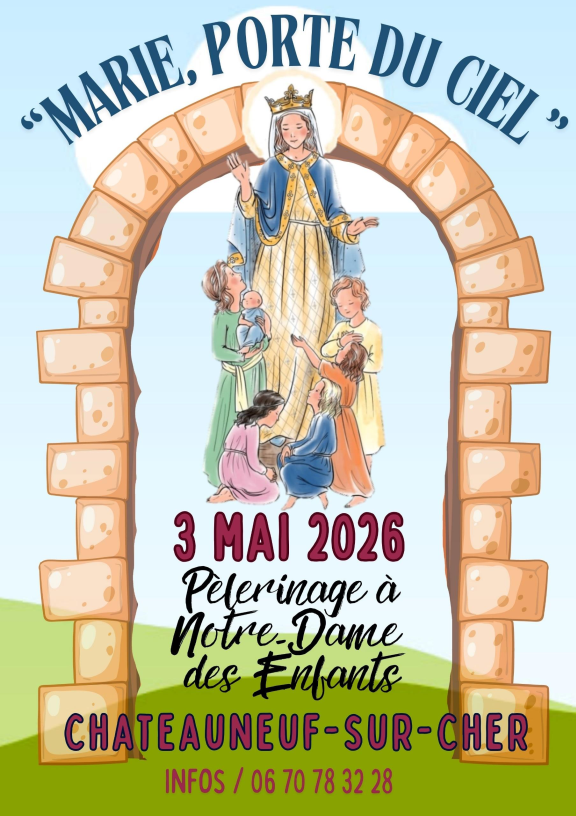 Notre prochain pèlerinage de Notre-Dame des Enfants se déroulera le dimanche 8 mai 2022 à Châteauneuf-sur-Cher. C’est le pèlerinage de tous les enfants de Marie,